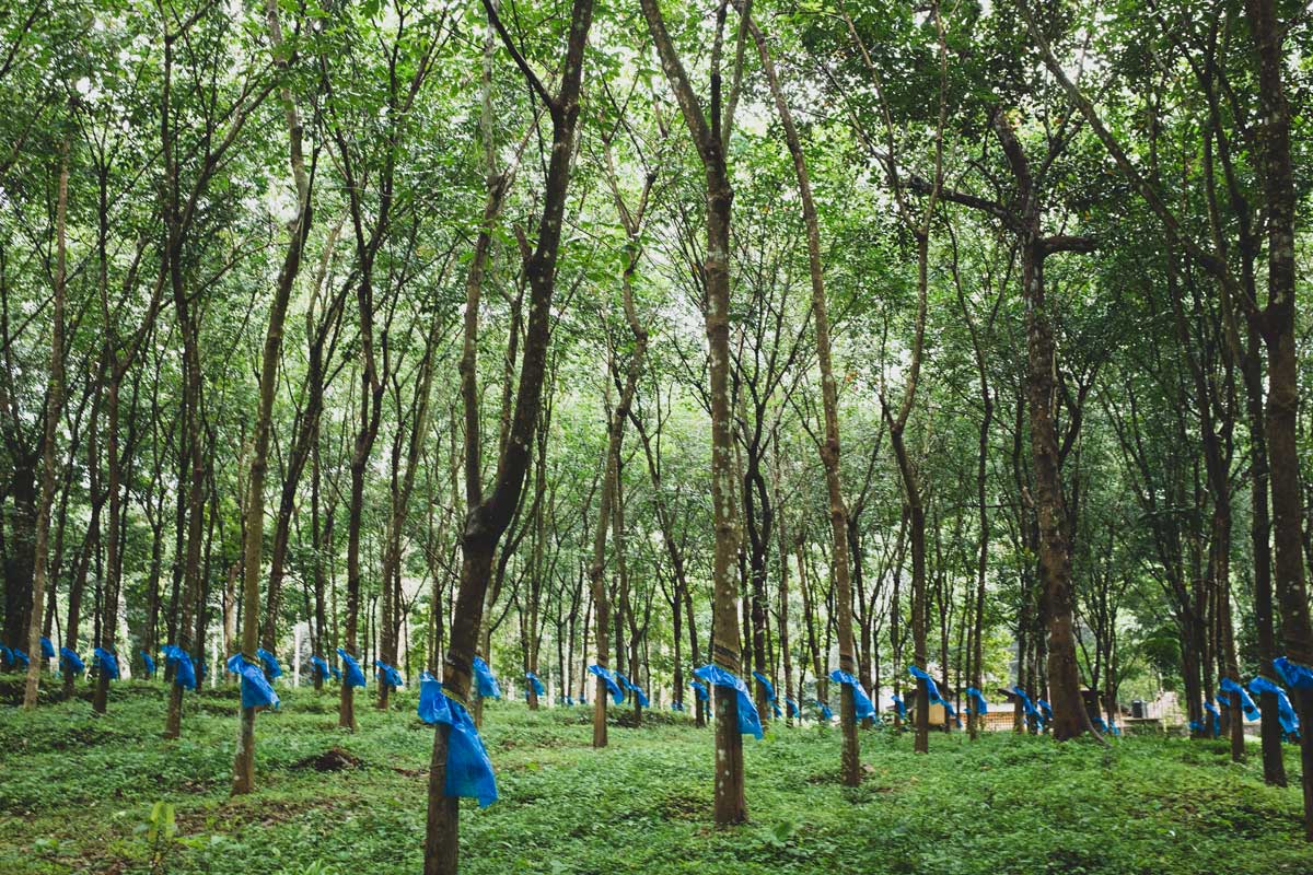 Rubber tree plantation in Kerala, South India.