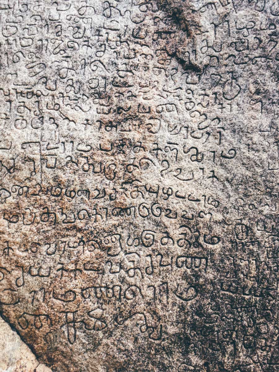 Scriptures carved in the stone at the Shiva Temple near Thirumayam.