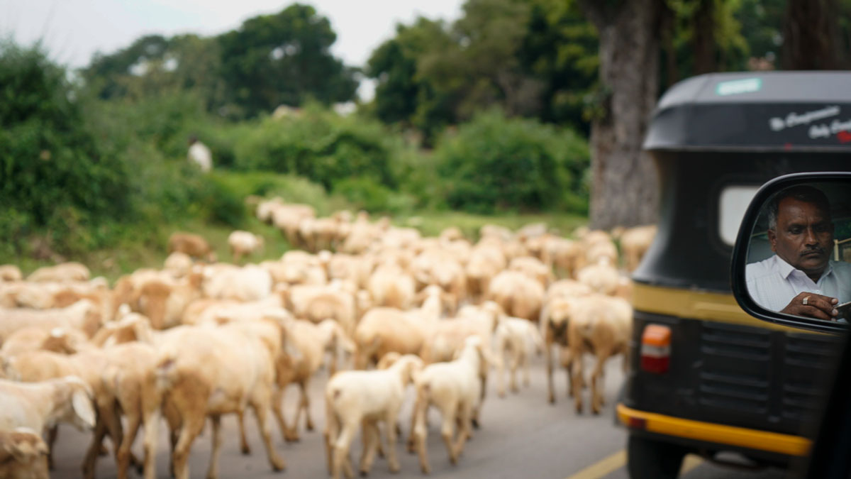 Sharing the road with livestock, South India.