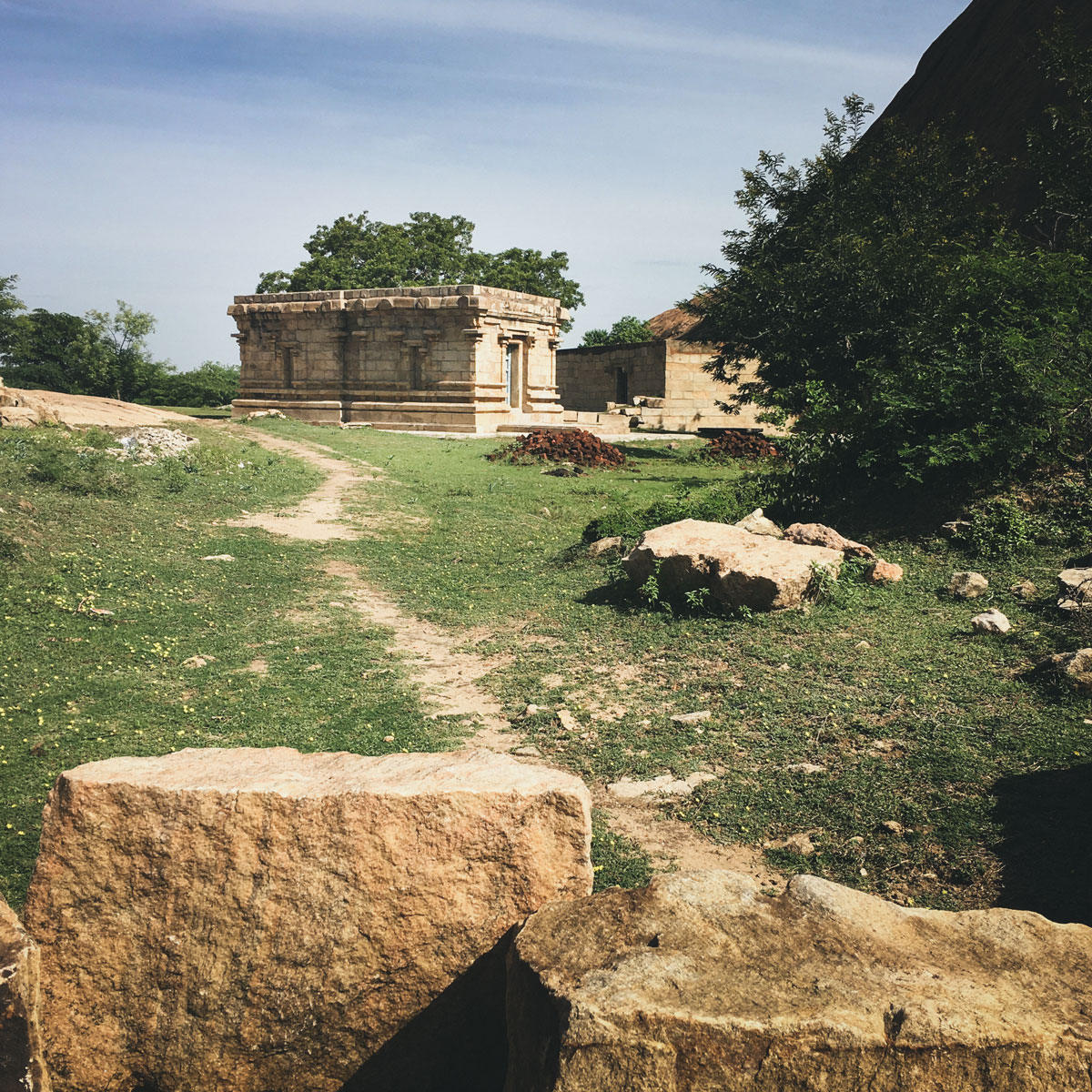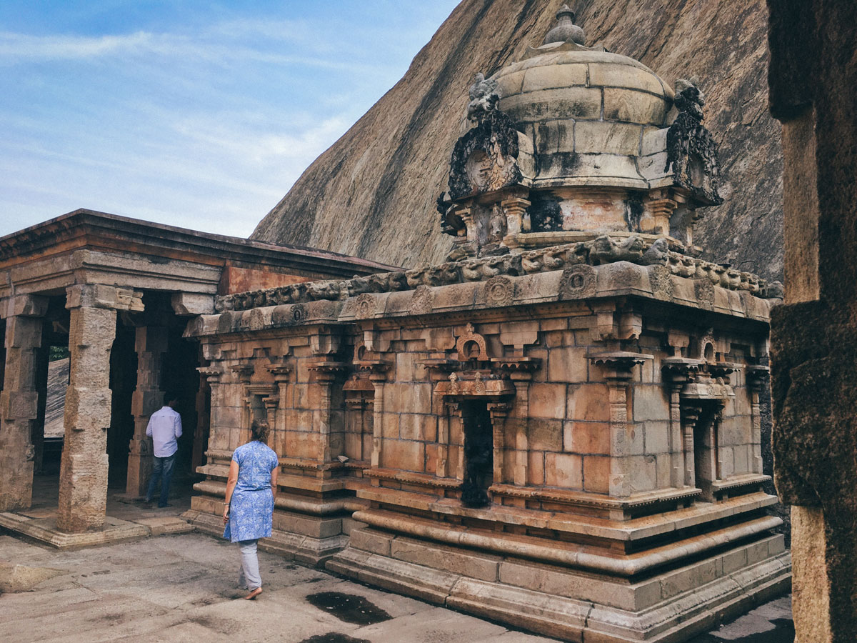 Karen walks amongst a quiet Shiva temple, found off the beaten track by our trusty driver Muraly.