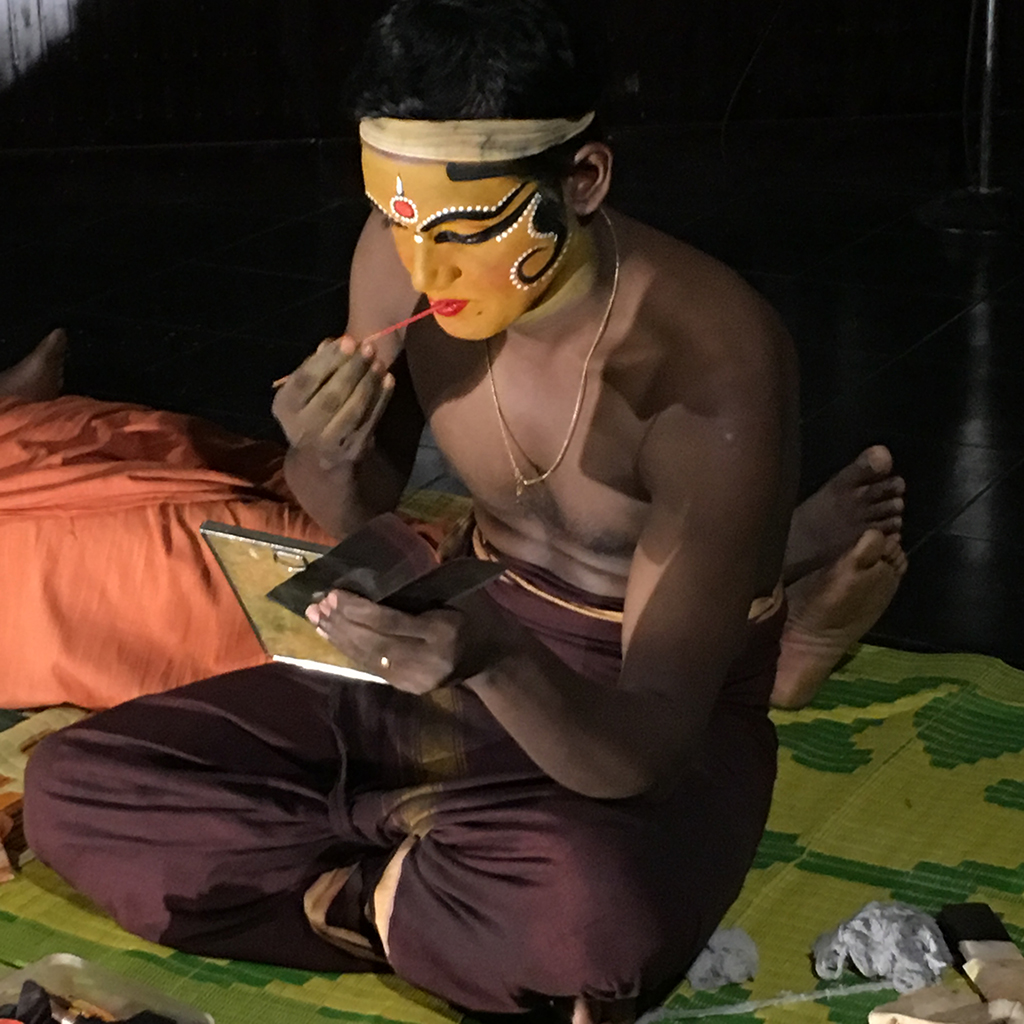 Kathakali performer applies his makeup, Kochi, Kerala.