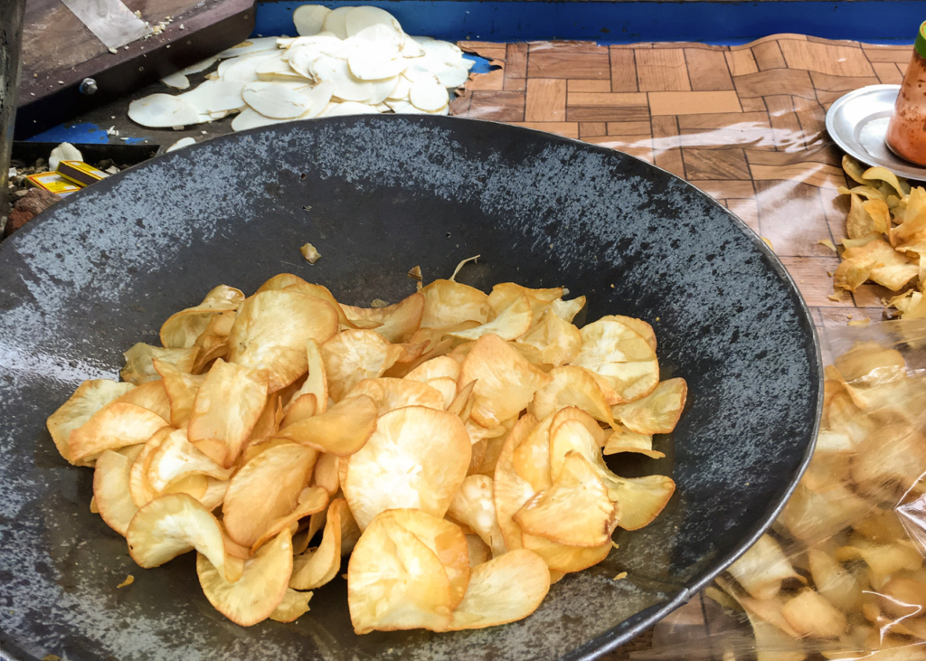 Cassava chips. Street food in Kochi, Kerala.