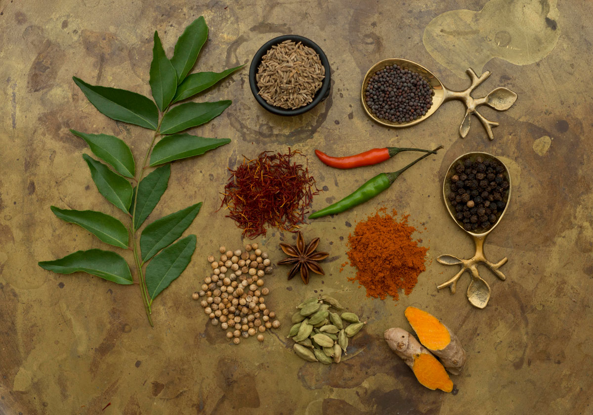 South Indian spice collection.