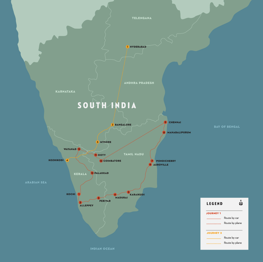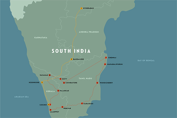 “A South India Road Trip” travel map.