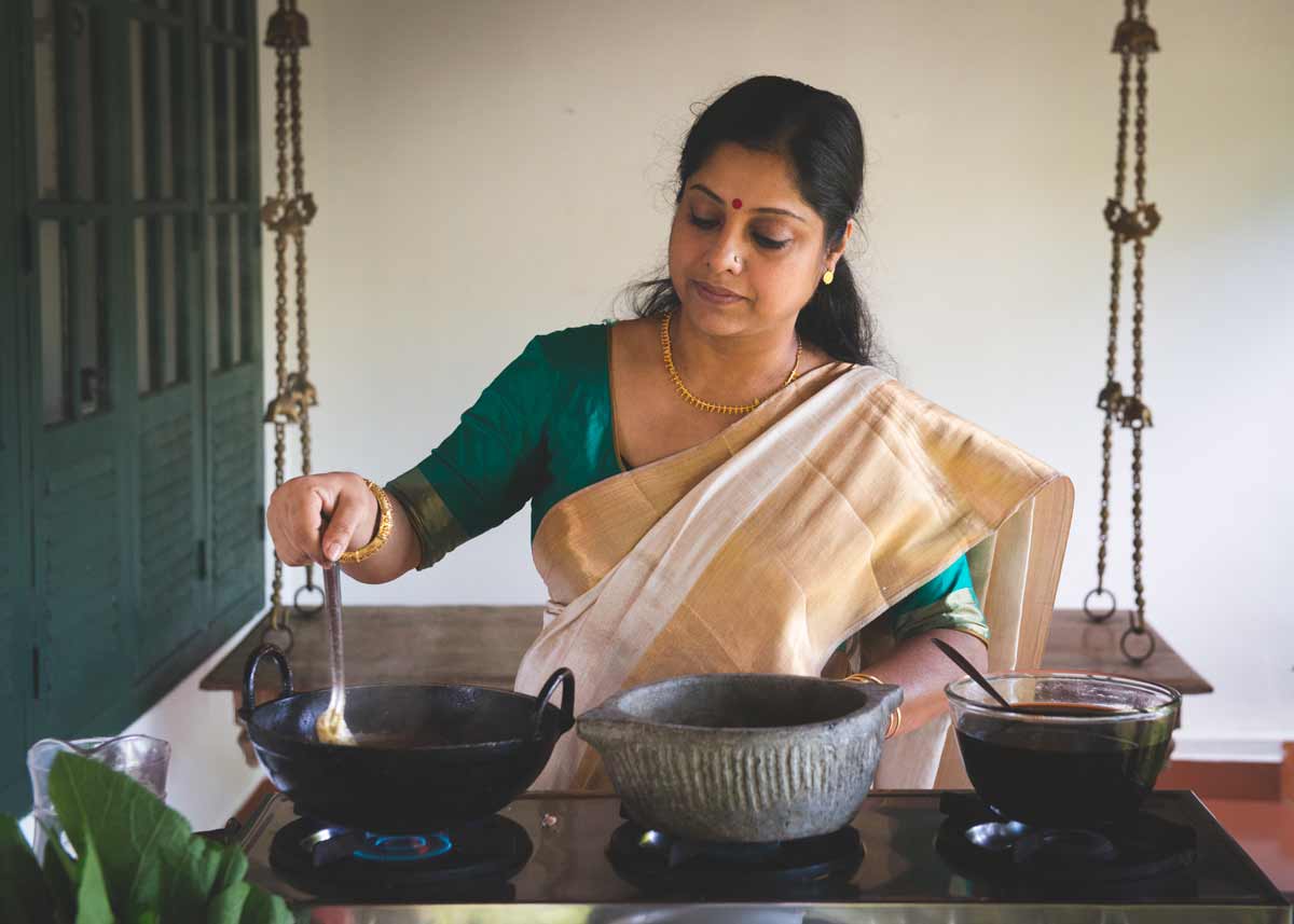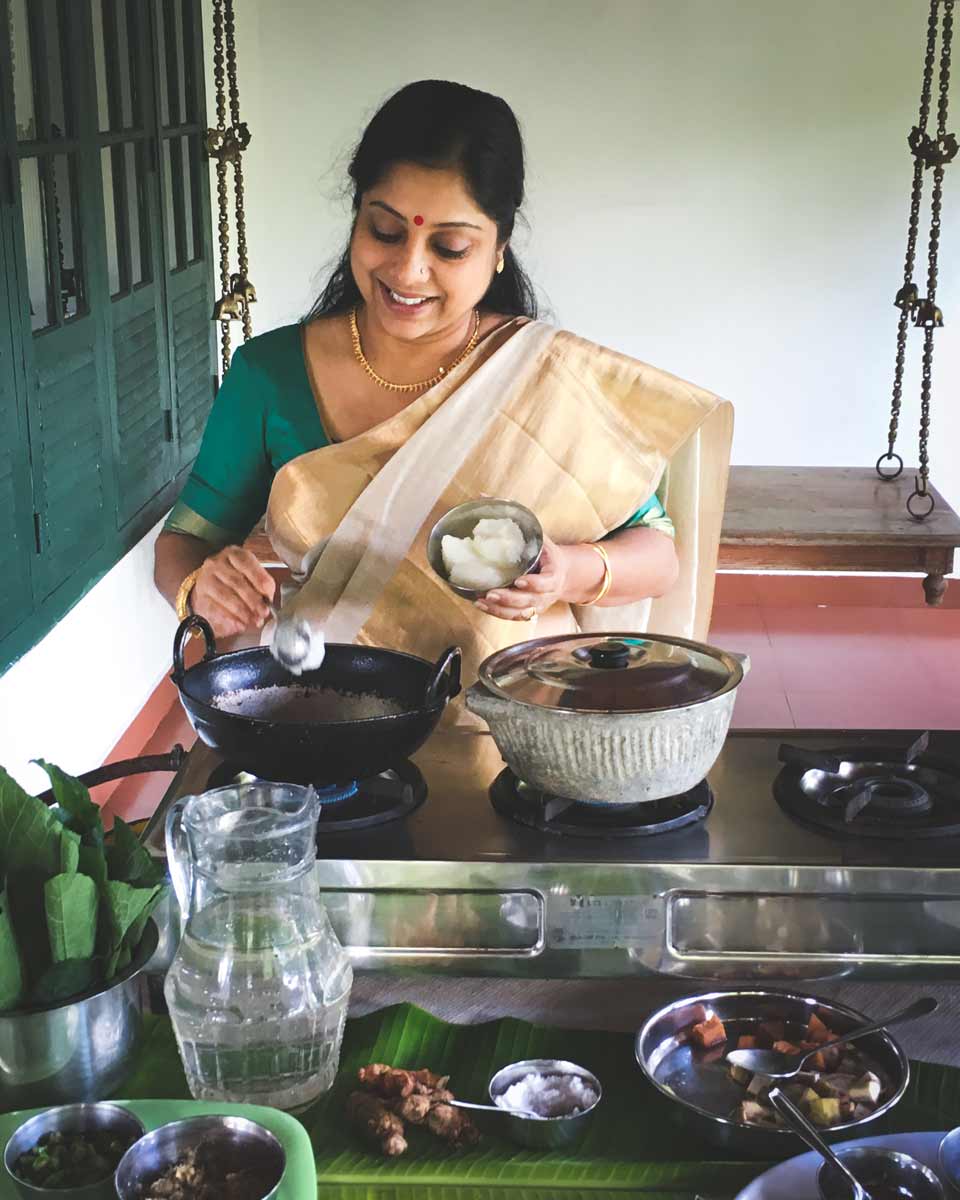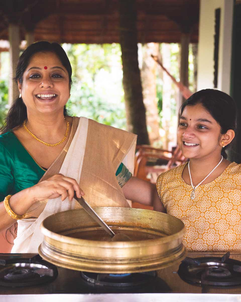 Ranjini Menon and Amuu making payasam with ripe bananas.