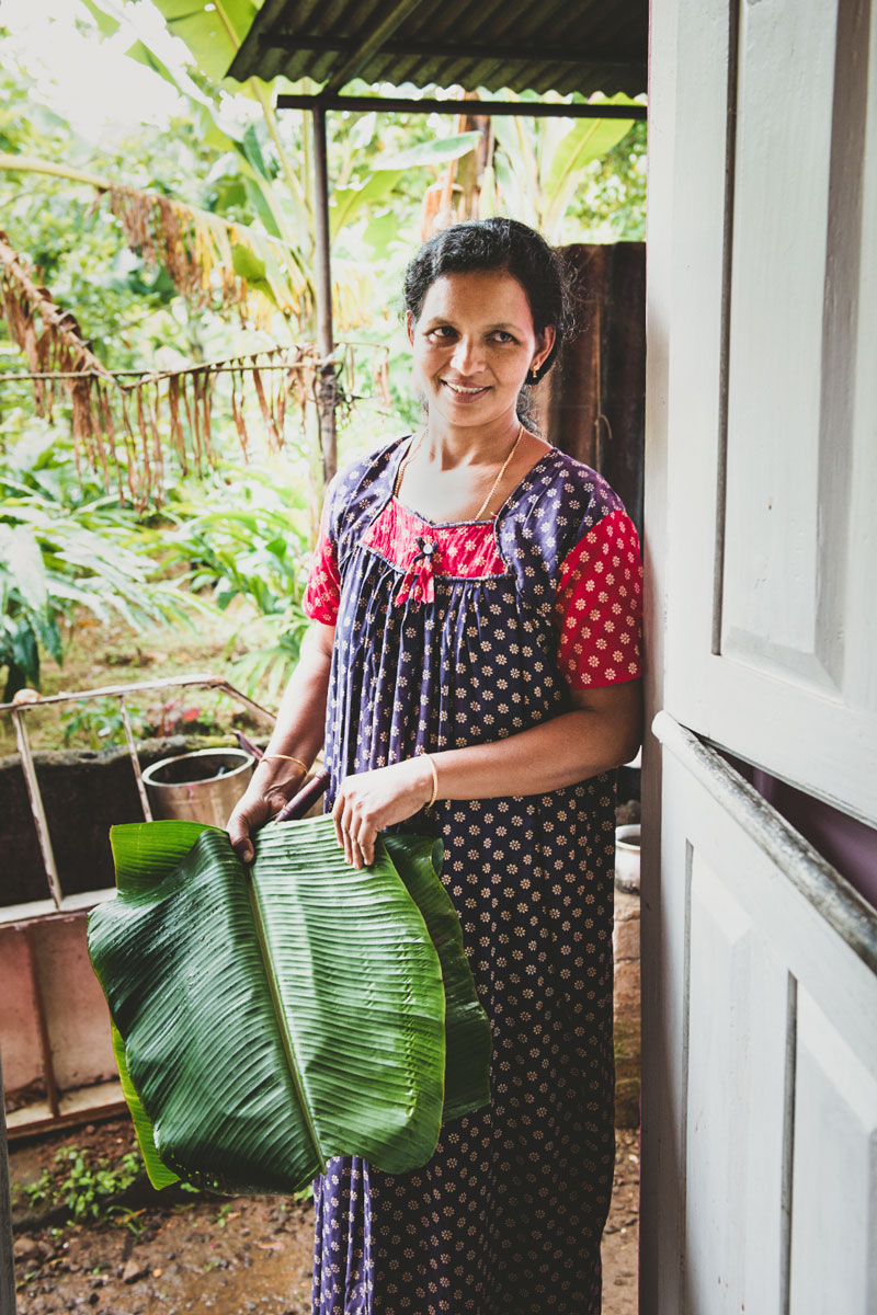 Ann with banana leaf.