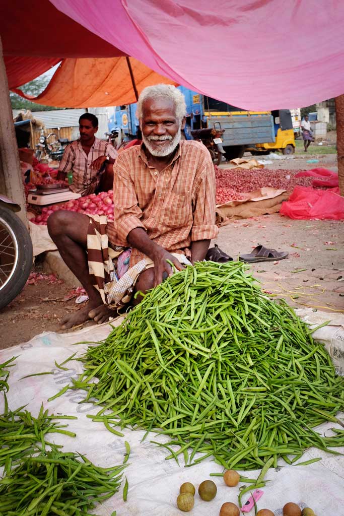 Beans for sale at a vegetable market outside of Madurai.