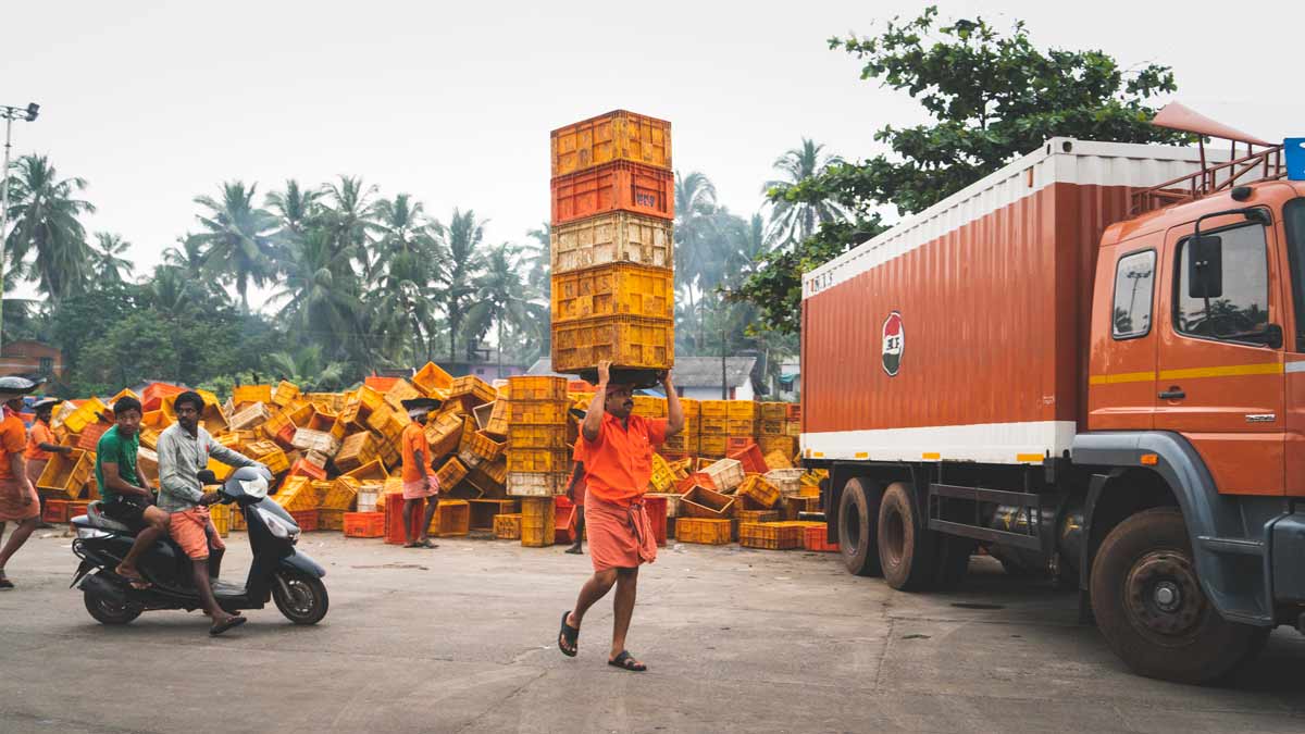 Man-with-Crates-and-Truck-Kozhikode-Fish-Market