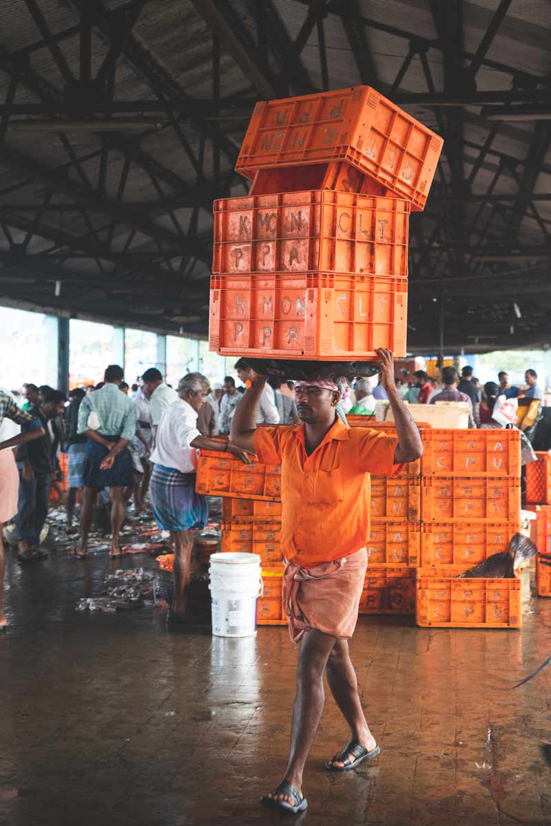 Kozhikode Fish Auction _Man-carrying-Crates-above-head