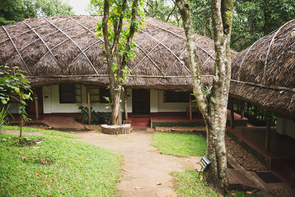 Traditional hut accommodation at CGH Earth’s Spice Village.