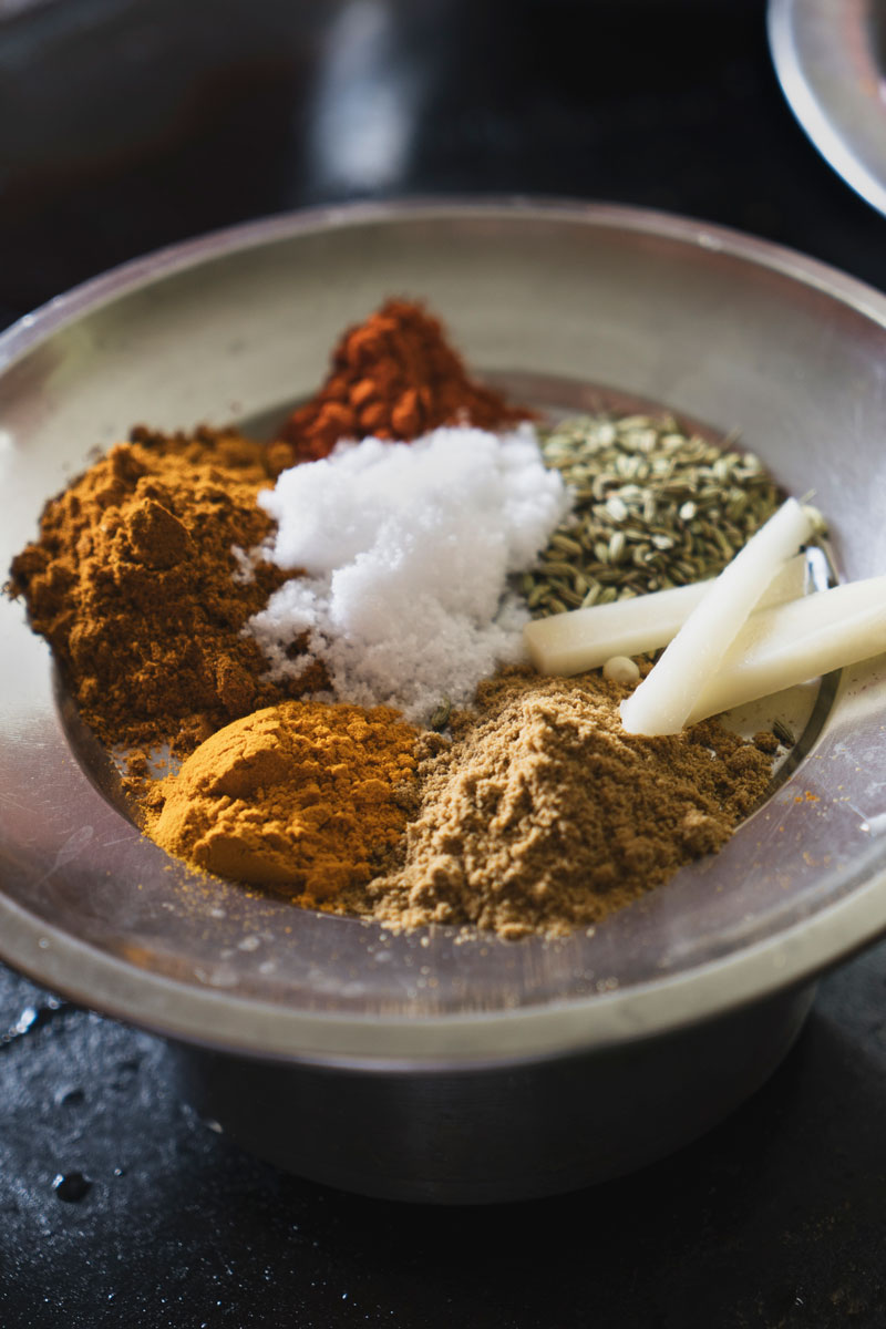 Spice prep for Aloo Masala.