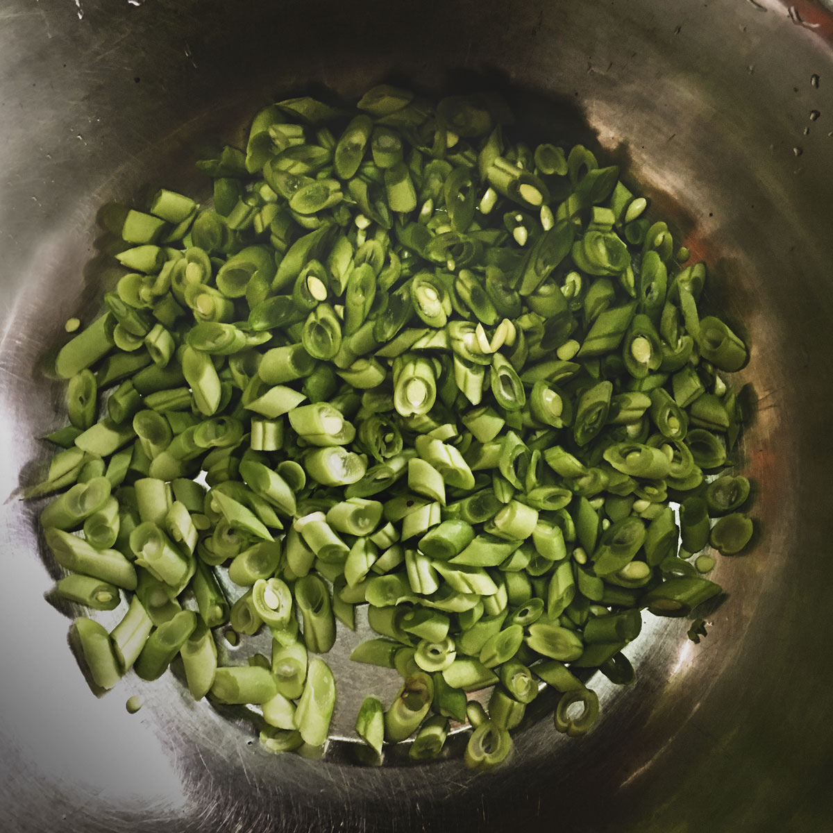 Preparation for green beans thoran.