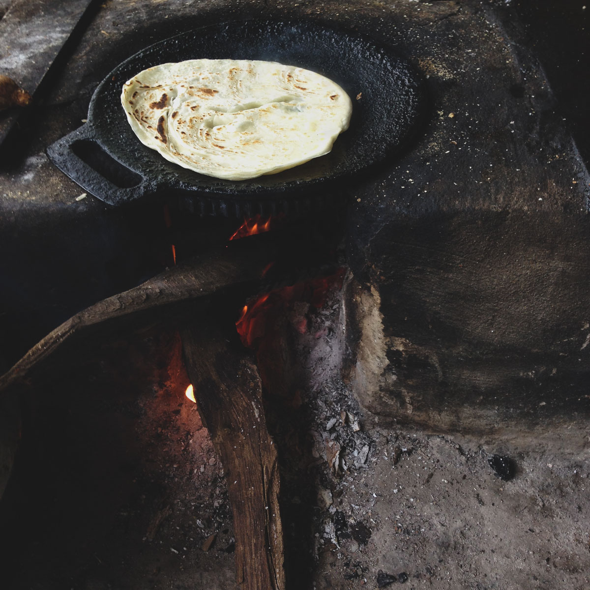 Paratha cooking with fire.