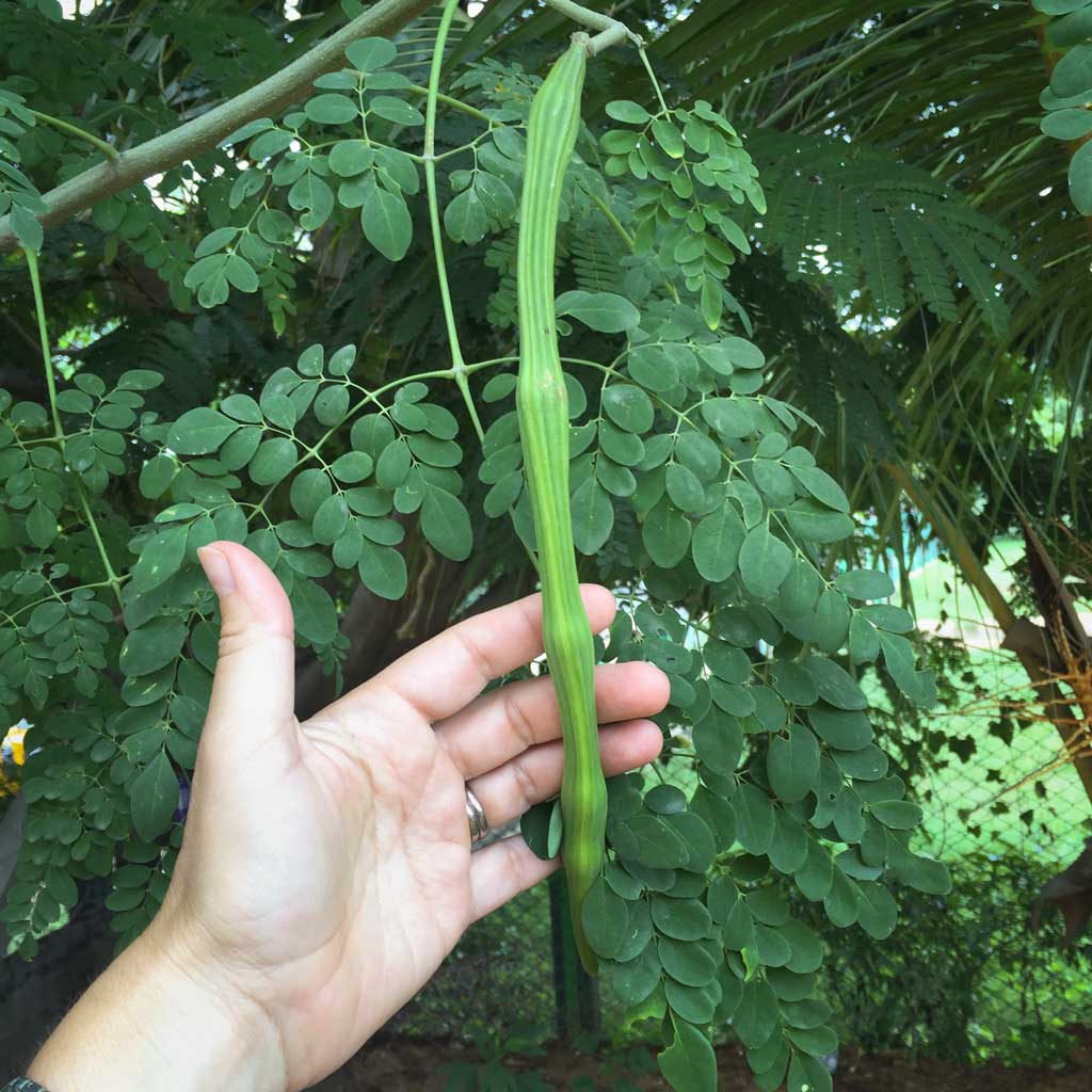 Chefs Dhiraj, Suresh and Chindi at Grande Bay Resort and Spa in Mamallapuram shared this authentic drumstick Sāmbhar soup with us. The fact that we walked their organic garden and saw the drumsticks hanging from the trees just a few feet from where we were cooking the soup made this a truly “mile zero” meal.
